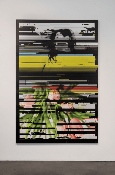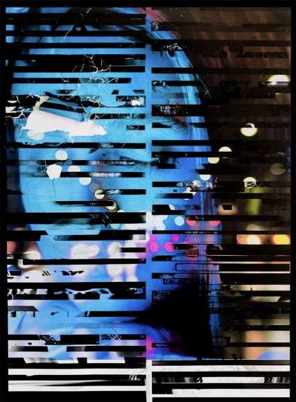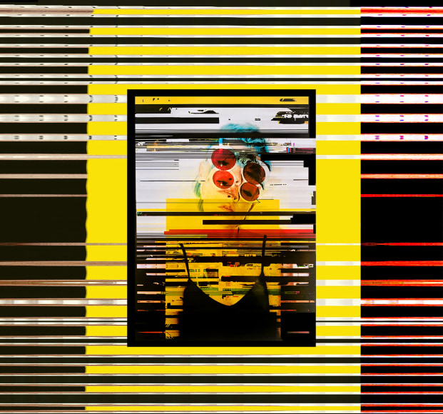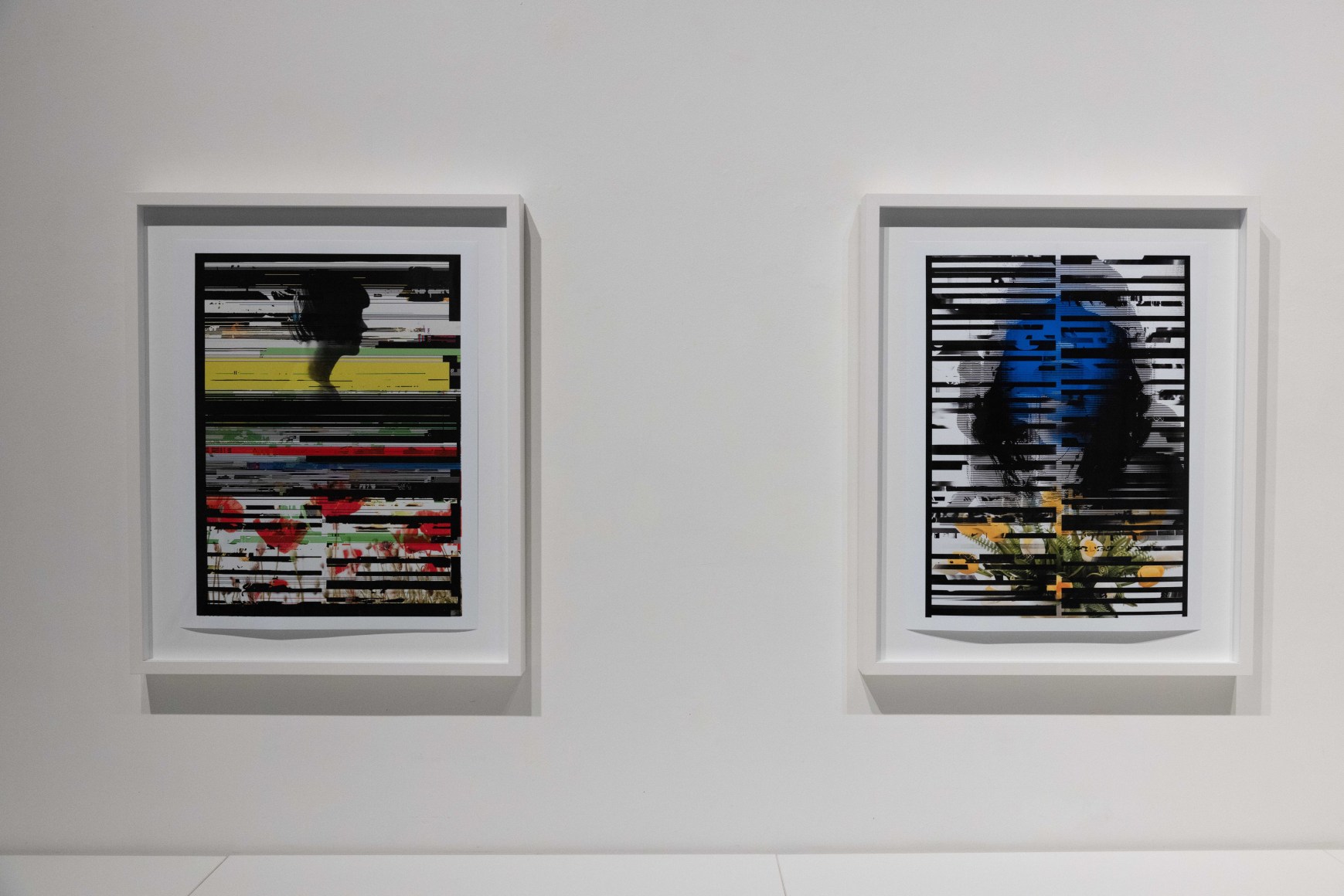 Unique archival UV pigment on canvas with glitched vinyl adhesive